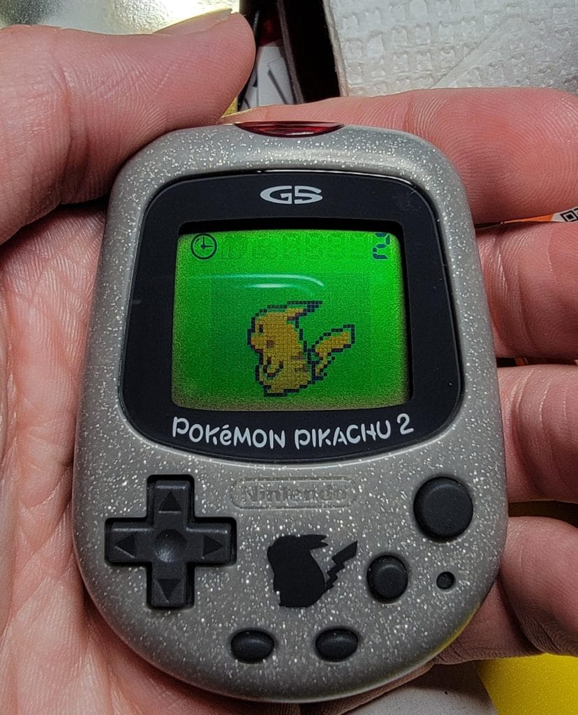 The device was designed to resemble a tiny version of the Game Boy Color. The first iteration in 1998 was bright yellow with a black-and-white screen. Two years later, Nintendo released an updated version called the Pokémon Pikachu 2 GS, which had a sparkly silver aesthetic with a little outline of a Pikachu at the center, in case you somehow forgot the ubiquitous mascot. Notably, the GS version had a color screen so you could see Pikachu in all his bright yellow glory.