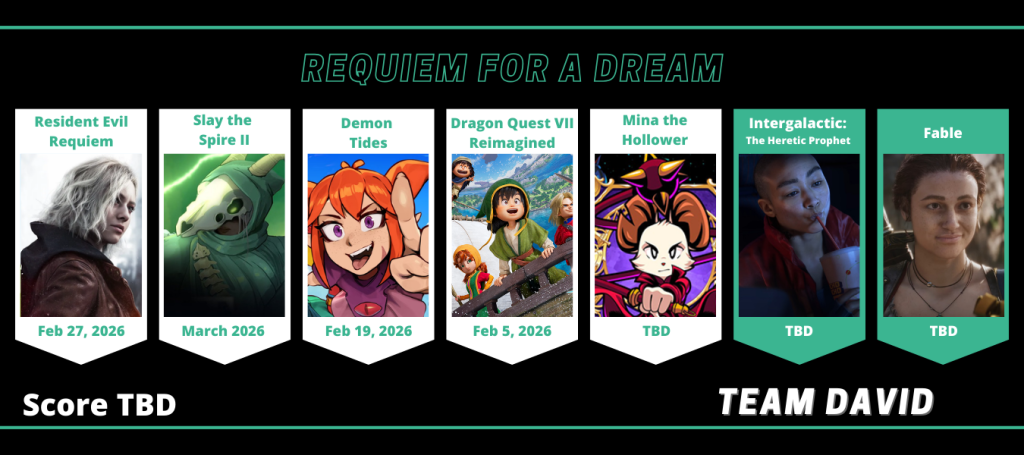 - Games must “exist” to be drafted. That means they have an official title and/or an official trailer with a placeholder title (e.g., The Witcher IV as of writing). No speculative picks like “the next 3D Mario game.”
